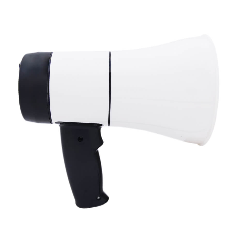 Рупор-громкоговоритель 619L ручного типа предназначен для информирования больших скоплений людей. Прибор выполнен из прочного АБС пластика, оснащен функцией записи речи длиной до 300 секунд. Благодаря мощности в 20 Вт и расстоянию покрытия в 500 метров рупор может использоваться на крупных площадках. Работает от встроенного литиевого аккумулятора емкостью 1500 мАч. На рукоятке есть удобный ремешок для фиксации громкоговорителя на руке. Управление осуществляется с помощью кнопок на задней панели.